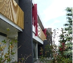 和菓子の会社ということで 日本の伝統色を内外部の随所にあしらった本社ビルです。 |