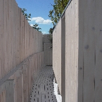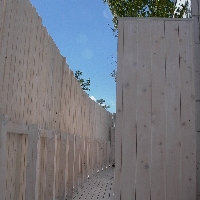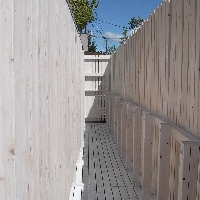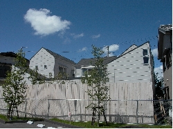 おおがかりなお風呂場のリフォームに合わせて外部の視線をさえぎるプライバシーコートを自然素材で作りました。リーズナブルな無垢材を使い 保護塗料は明るい白で仕上げました。塀越の空 樹木の緑 塀の白のコントラストが美しい路地空間になりました。