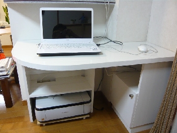マンションのリビングで家族みんなが使えるPCコーナーをつくるご相談をいただきました、配線も機器もすっきり収納できました。